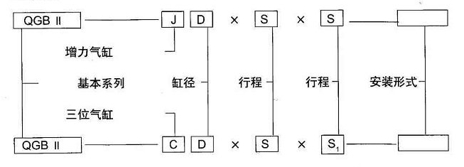 *兩種均為QGB||系列相同缸徑的氣缸串聯(lián)而成的雙活塞氣缸,兩活塞運動方向相同。QGB||—J系列為增力氣缸,前后兩活塞桿聯(lián)為一體,其桿端出力為單活塞推、拉力之和,拉力為單活塞拉力二倍。此產(chǎn)品也可作為氣液阻尼氣缸應(yīng)用。QGB||—C系列為三位氣缸前后兩活塞桿單獨分開。當前缸行程(S)大于后缸行程(S1)時,前端活塞桿頭有三個位置。
