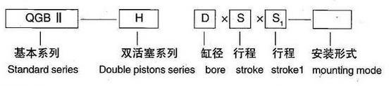 *本廠品是以兩臺QBG||系列相同缸徑的氣缸對接組合而成的雙活塞系列氣缸,兩活塞行程可以相同,也可不同;钊\(yùn)動方向相反。將一端活塞桿固定,可作為多為氣缸,用途多樣化。